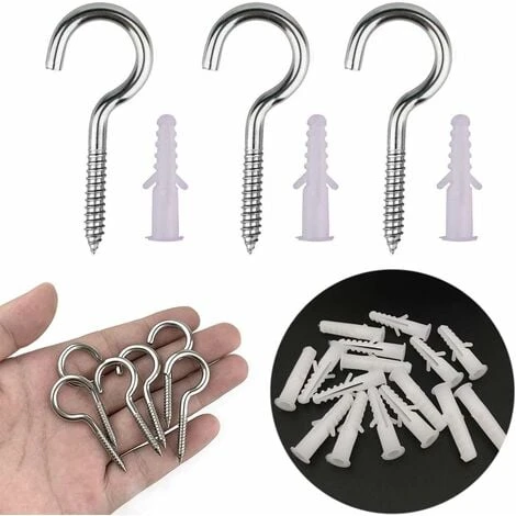 Stable et durable: Les crochets en acier inoxydable (304) assurent une adhérence fiable et ferme, une forte dureté, les vis à crochet en acier inoxydable peuvent empêcher la corrosion et avoir une protection complète contre la corrosion