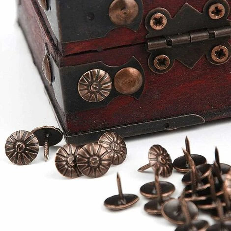 Taille: Le capuchon mesure environ 11 mm / 0,43 pouce de diamètre et environ 16 mm / 0,63 pouce de longueur. Il peut percer environ 14 mm / 0,55 po de profondeur. Il existe deux couleurs de clous décoratifs pour meubles, bronze vert et bronze rouge que