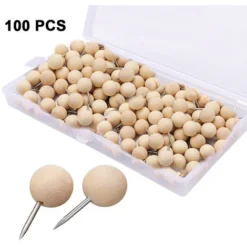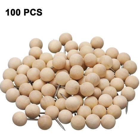 100 Pièces Punaises En Bois Punaises En Bois à Tête Ronde Punaises En Bois Avec Pointe D’Aiguille En Acier Punaises En Bois Décoratives Pour Carte Photos Documents Tableaux D’Affichage