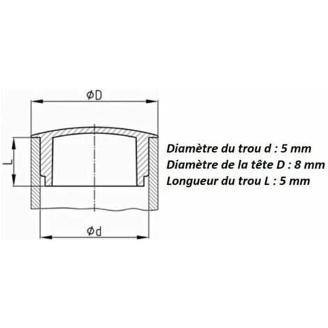 10x Bouchon Blanc Diamètre D = 8mm X D = 10mm Capuchon Protection Meuble Cache Trou Vis