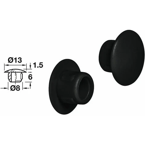 20x Cache Trou Bouchon Plastique 8mm Noir RAL 9005 Capuchon Protection Meuble