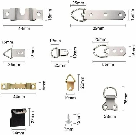 Contient 96 types différents d’outils d’installation matérielle, accessoires pour l’installation du cadre photo, cadre et horloge, suffisants pour répondre à vos besoins.