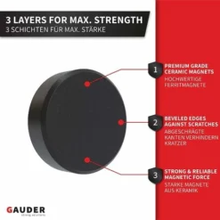 QUALITÉ PREMIUM – Les aimants artisanaux GAUDER (18 mm x 5 mm) sont extrêmement solides et robustes en termes de forme et de taille. Tous les aimants GAUDER sont fabriqués selon le procédé anisotrope élaboré.