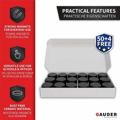 ADAPTÉ TOUTES SURFACES – Les aimants en ferrite GAUDER sont créés pour les surfaces métalliques telles que les réfrigérateurs, tableaux blancs, panneaux d’affichage, tableaux magnétiques et tableaux à feuilles mobiles – utiles dans les cuisines, bureaux, écoles, universités et ateliers.