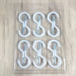 Contenu de l’emballage : 12 crochet a visser blancs. La longueur totale du produit est de 7,3 cm, y compris la longueur de vis de 2,2 cm ; le diamètre intérieur du crochet en plastique : 2,6 cm ; l’épaisseur de la vis : environ 4,8 mm ;