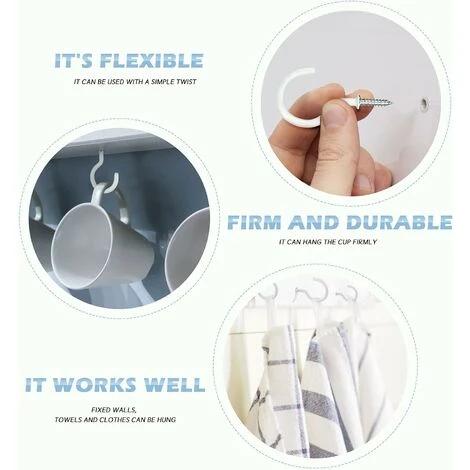 Matériaux de haute qualité : les crochet vis sont en métal et en plastique ; le matériau métallique est durable et lisse, difficile à rouiller ; la matière plastique sur le dessus peut rendre le crochet à visser plus beau et plus sûr lors de la suspension d’objets ;