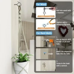 un trou dans le mur, insérer un tube en plastique, puis insérer les crochets dans le tube en plastique. Il est recommandé d’utiliser une mèche de 1/8 de pouce.