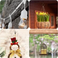 Large champ d’application – les crochets à visser sont résistants au vent et robustes. Vous pouvez littéralement les utiliser partout ! Idéal pour les guirlandes lumineuses, les éclairages de terrasse, les illuminations de Noël, les plantes, les guirlandes