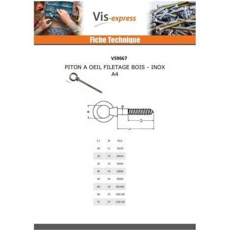 Piton à Oeil Filetage Bois Inox A4 5X50 Conditionnement: Unitaire