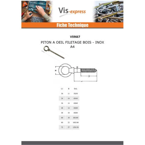 Diamètre = 8, Longueur = 80, Matière = Inox, Famille de produits = Pitonnerie