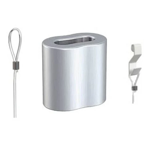 Manchon permettant de réaliser un câble perlon à boucle sur-mesure en serrant avec une pince le manchon sur un câble perlon ou un câble acier. Pour câble d’un diamètre de 1,8 à 2 mm.